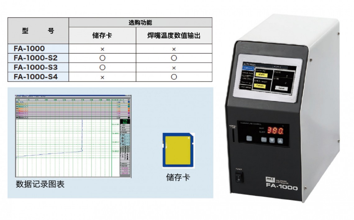 ・可选购储存卡功能与焊嘴温度数值输出功能。