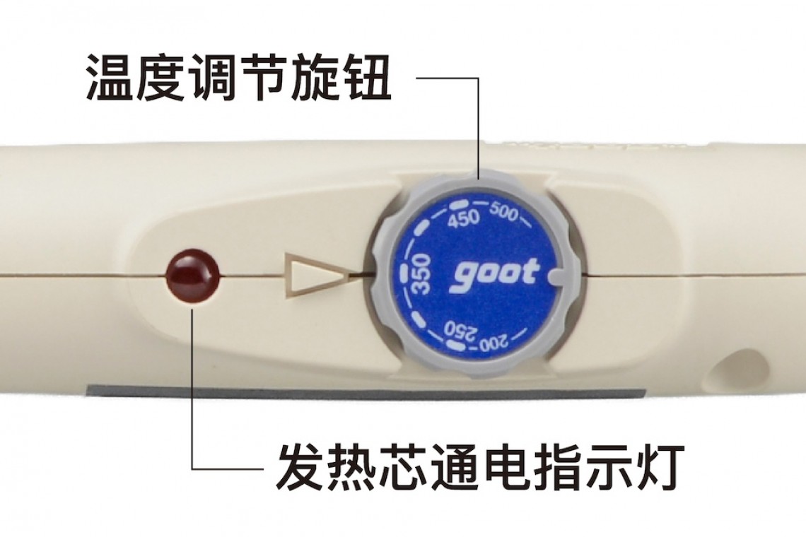 200–500℃温度范围,旋钮式温度调节,适用于多种焊接作业。(配备耐热保护套)