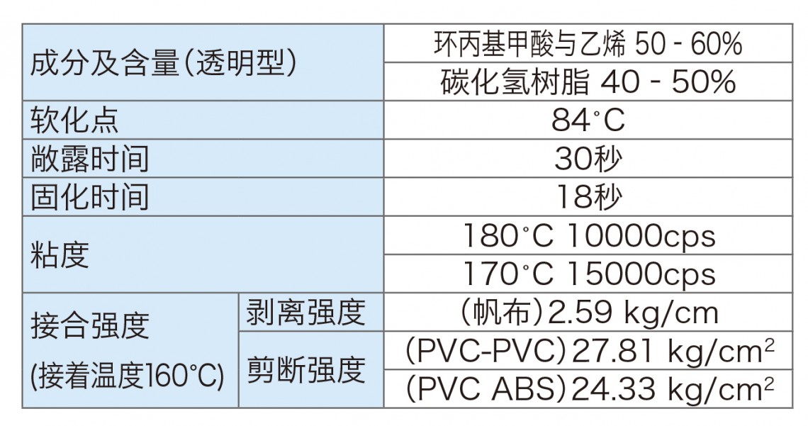 本资料所载数据为测量值,并非保证值。热熔胶在粘接后如再次加热将会熔化。