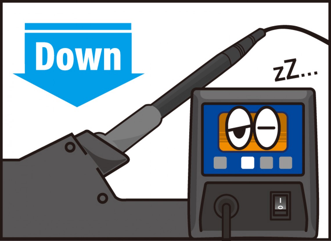 ・通过休眠功能和自动关机功能,有效防止焊嘴因空烧而劣化,并避免因忘记拔掉电源插头而引发的意外情况。