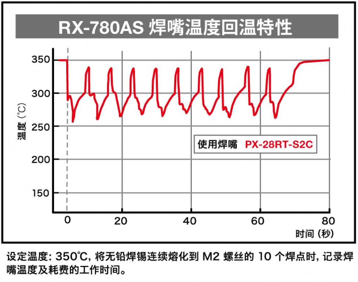 在使用标准焊嘴的情况下,约 30 秒即可达到设定温度 350℃。