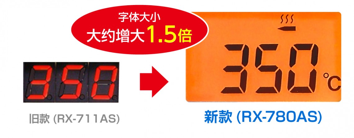 数字显示,设定温度一目了然。 通过加/减按键,可在 200℃ 至 480℃ 范围内实现 1℃ 步进的精准调温。